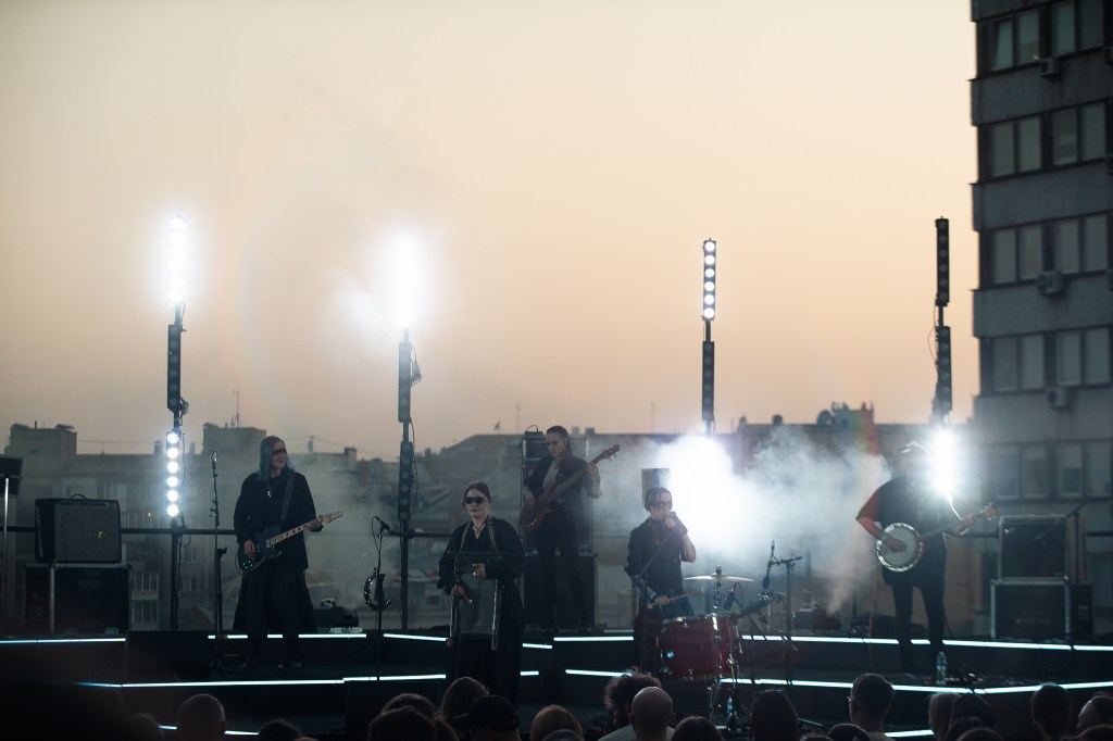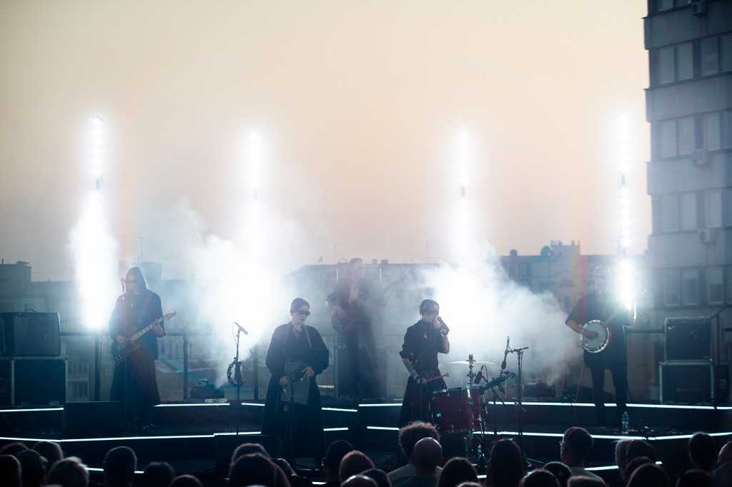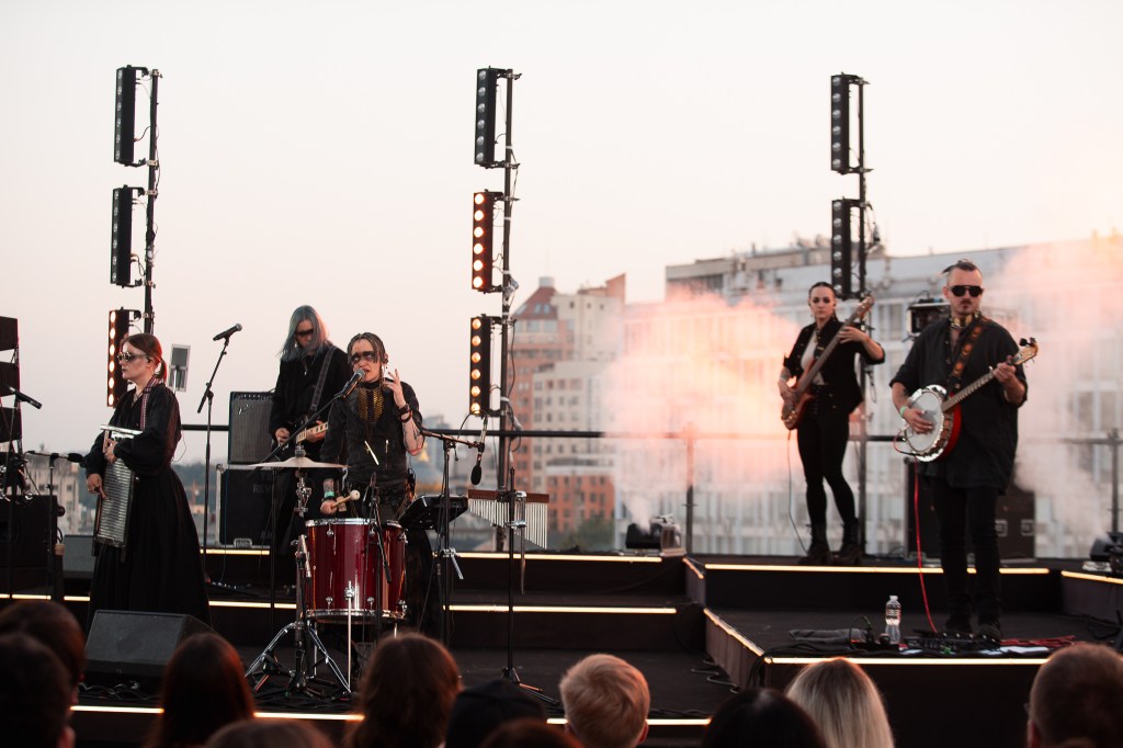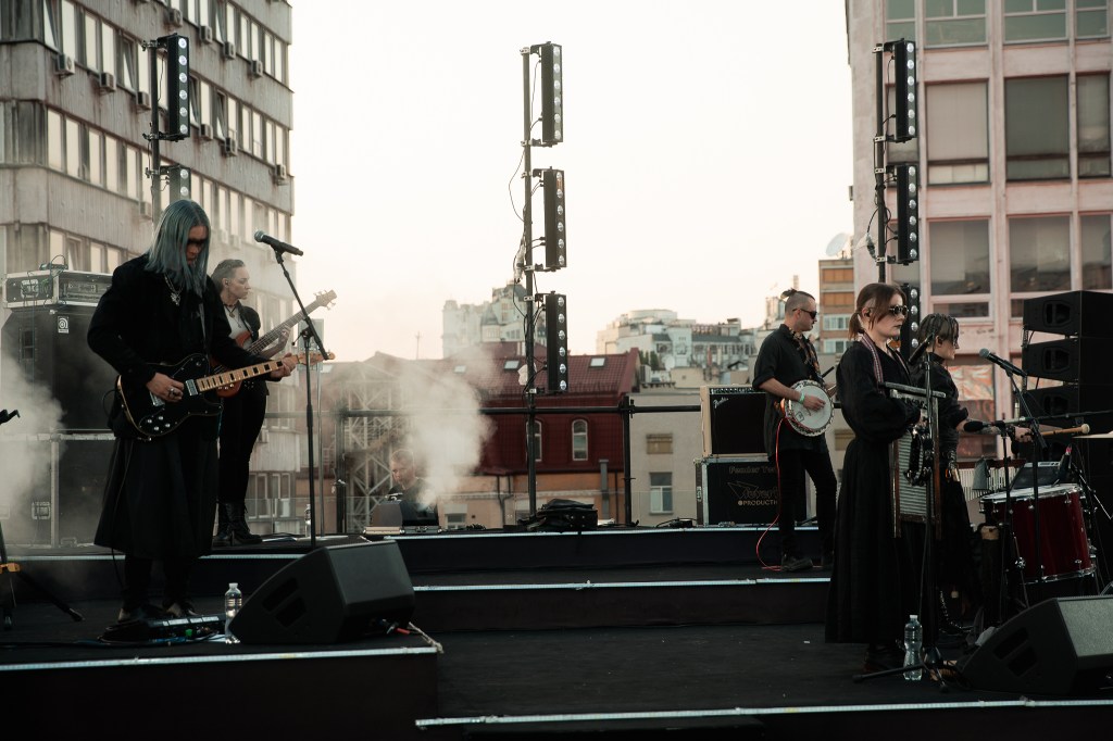 One of the most surreal shoots I’ve ever done. Ukrainian dark-country band Zwyntar played a show on the roof of the Gulliver Mall in Kyiv, downtown, on the last day of summer 2025 – 31 of August. Yes, during the war. Thankfully, there were no air raid alarms during the show so it went uninterrupted from start to finish.